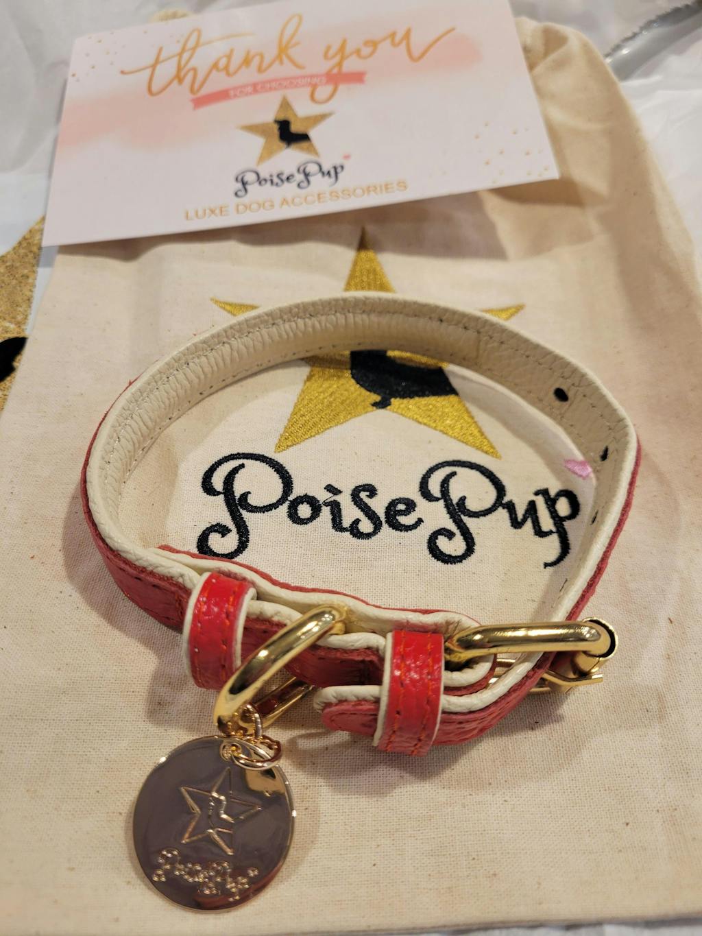 - MATCHING LEASH & WASTE BAG HOLDER AVAILABLE – To make this designer collar really pop, we recommend the matching PoisePup leash and waste bag holder. Made from the highest quality materials and finish, they look gorgeous independently or as a BUNDLE.